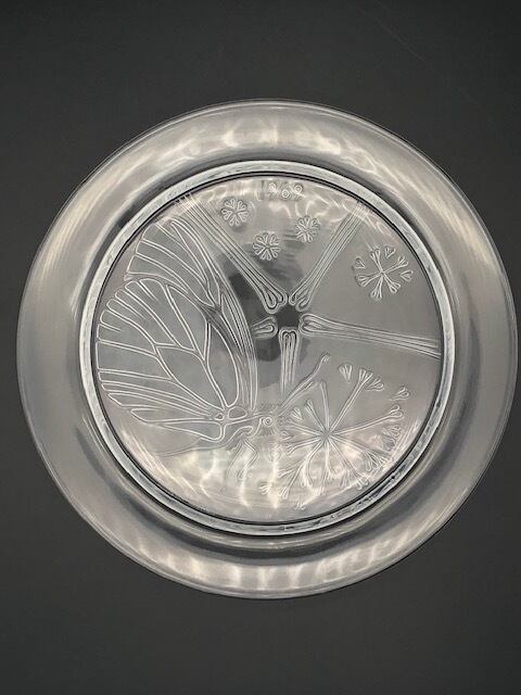 1969年、ラリックの孫娘のマリー=クロード・ラリックの手によってデザインされたイヤープレートになります。サイズは21.5cmとお部屋のデコレーションにもフィットする、存在感のあるサイズです。1965年から1976年の12年間だけ製作されてイヤー・プレートは、世界中に多くのコレクターがいます。このプレートのデザインは、ラリックの自然主義を感じる、蝶のデザインは、とてもシンプルで美しいデザインです。目立った傷等は、御座いませんおで、良く画像をご確認下さい。一応、オリジナルの箱がありますが、51年前の箱のためかなり老朽化しています。最初のラリックの作品を購入する方にもお勧め出来る作品です。