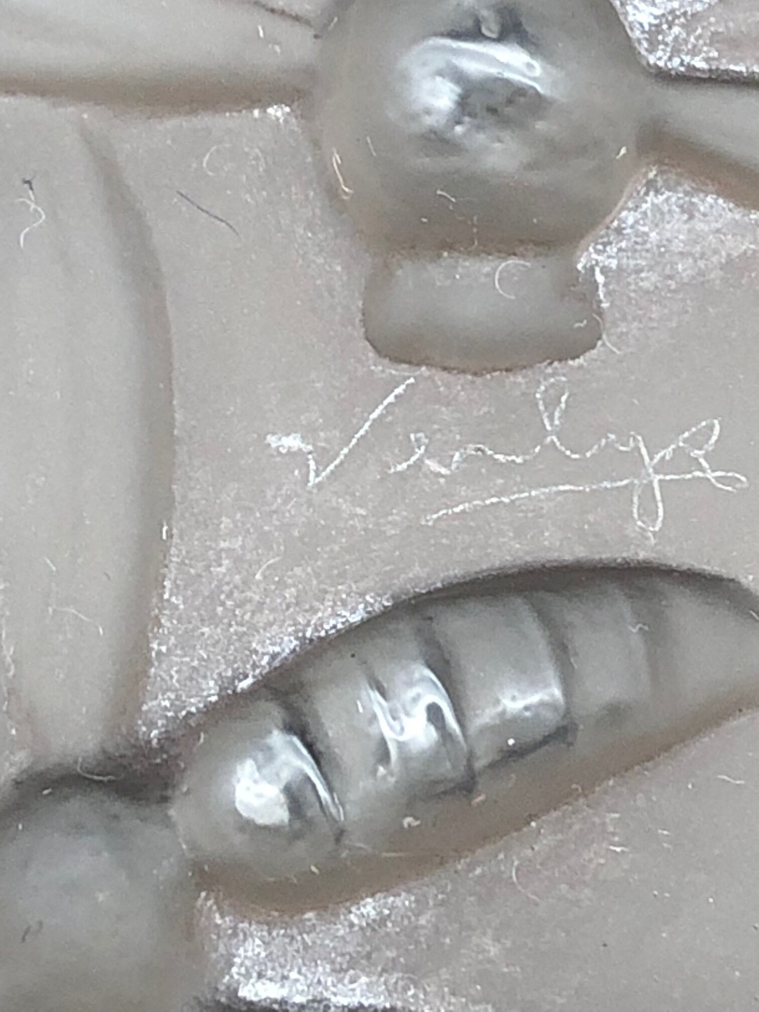 Verlys ヴェルリスとは、Verrerie des Andelysヴェルリー・ デ・ザンデリス(アンデリス・ガラス工場)を縮めたブランド名で、ノルマンディー地方にあるアンデリスという町に在った工業ガラスメーカーHolophane社が1925年〜1955年工芸ガラス部門を設け、才能あるアーティストを集めて制作させた装飾的なガラス器の一部に見られるマークです。