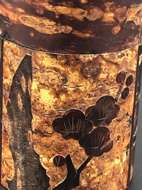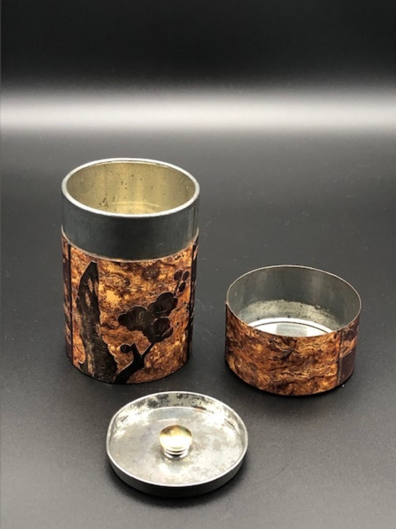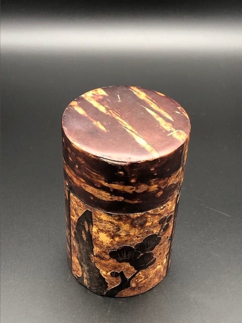 ●美しい天然木を使った伝統工芸品「桜皮細工」の茶筒のです。