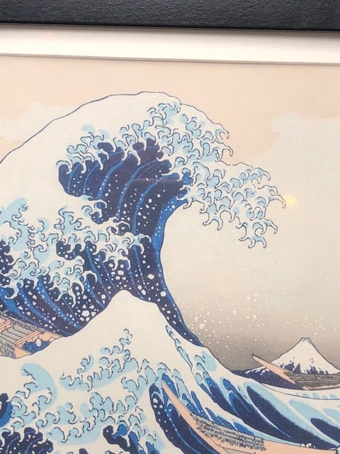 ●商品は、額付き(黒) 浮世絵 葛飾北斎の神奈川沖浪裏(富嶽三十六景)復刻版木版画です。 『神奈川沖浪裏』(かながわおきなみうら)は、葛飾北斎が制作した木版画である。1831年(天保2年)頃に出版された名所浮世絵の連作『富嶽三十六景』の一つで、巨大な波と翻弄される舟の背景に富士山が描かれている。北斎の作品の中では最も有名であり、世界で知られる最も有名な日本美術作品の一つである。 本物の手刷り現代版画の魅力を味わってください。 ・一枚一枚熟練の職人による手刷り木版画浮世絵。 ・最高級の和紙を使用。 ・江戸時代の浮世絵を忠実に再現した復刻版になります。額は安価な物のため、再購入してお飾り下さい。
