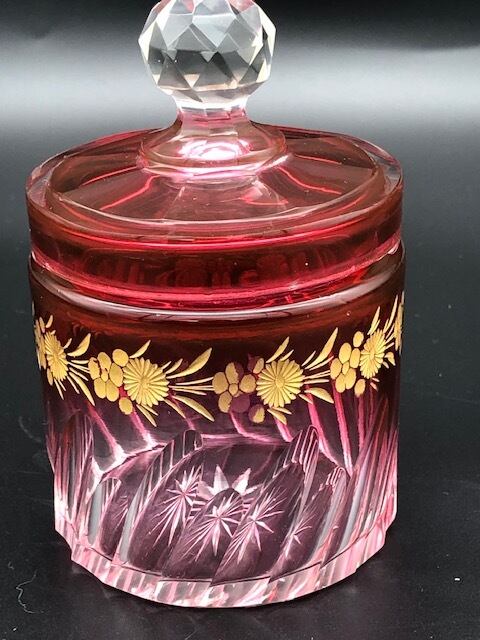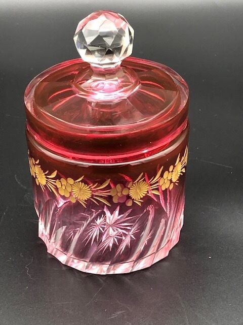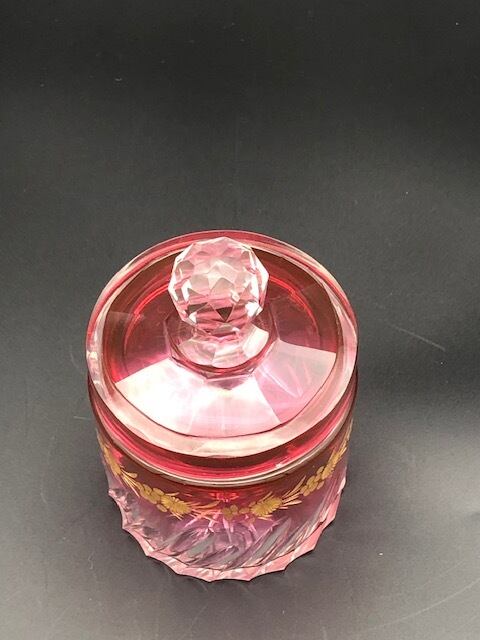 クランベリーグラスのオールド・バカラの小物入れです、ルビーレッドの鮮やかな色に