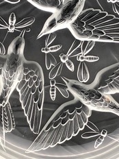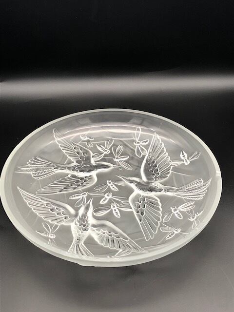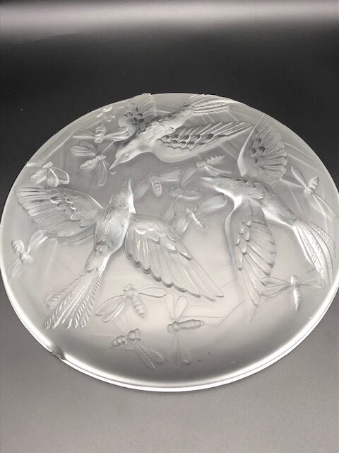 VERLYSの透明なクリスタル・ガラスは、光の角度では、とても綺麗に輝き、鳥と蜂のモチーフの細工は、立体感も感じ、とても精工に出来ている、躍動感を感じる、本当に素晴らしい作品です。直径約30cmのお皿は、サイズ感もあり、とてもインパクトのある作品です。