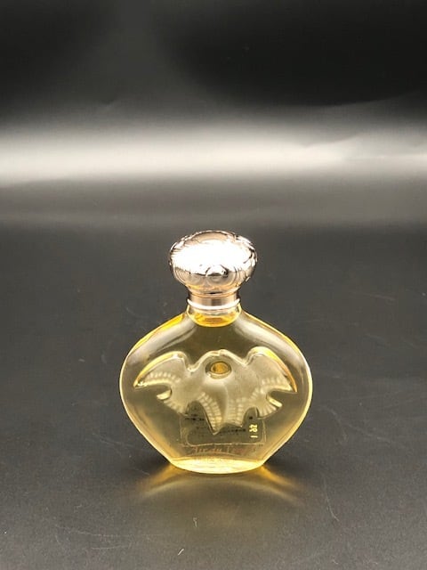 ラリックの鳩のデザインが香水瓶の側面に描かれています。