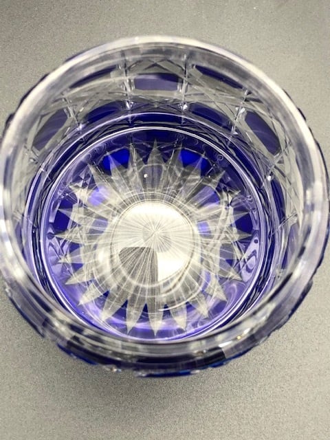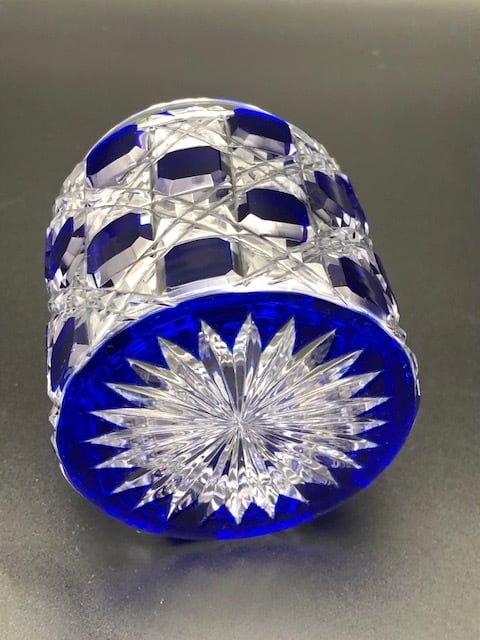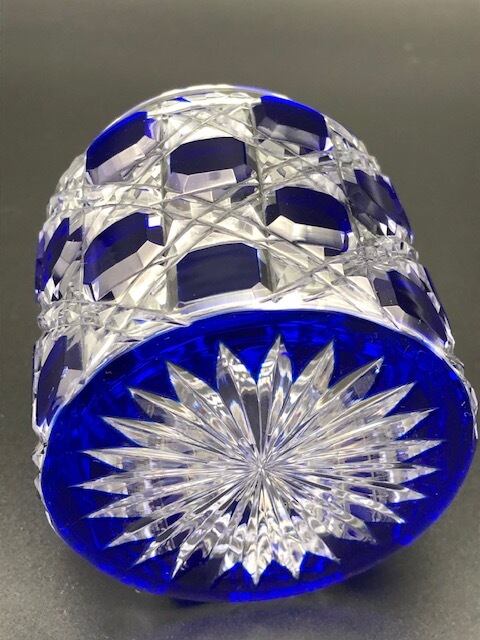 オールドバカラ ディアマン ピエーリー 色被せ切子 コバルトブルー キャンディーポット