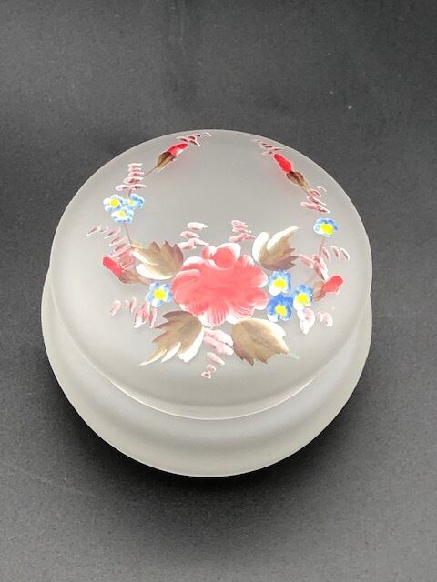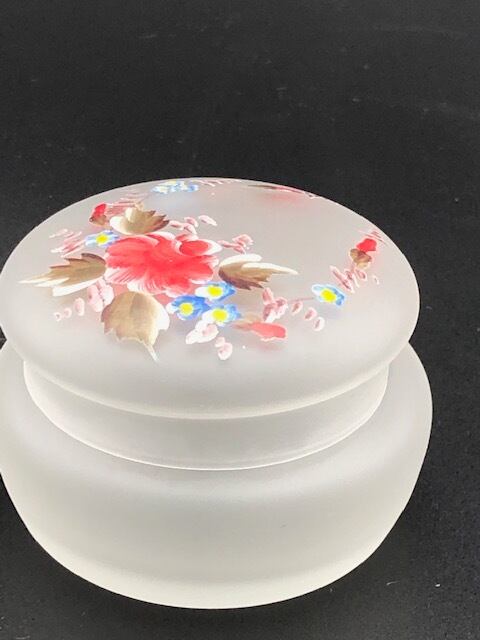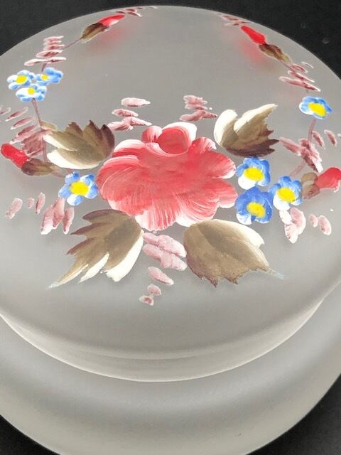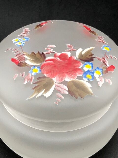 小物入れです。曇りガラスの質感も良く、ピンクの花と小さなブルーの花のコントラストが